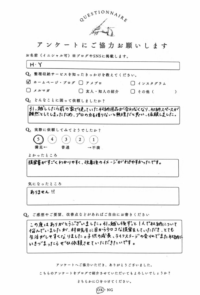 お客様アンケートにもご協力頂きました。掲載許可ありがとうございます^^