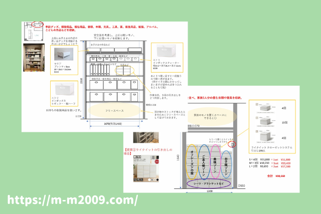 提案書があると、収納用品を入れたときのイメージや金額がわかりやすくなります^^